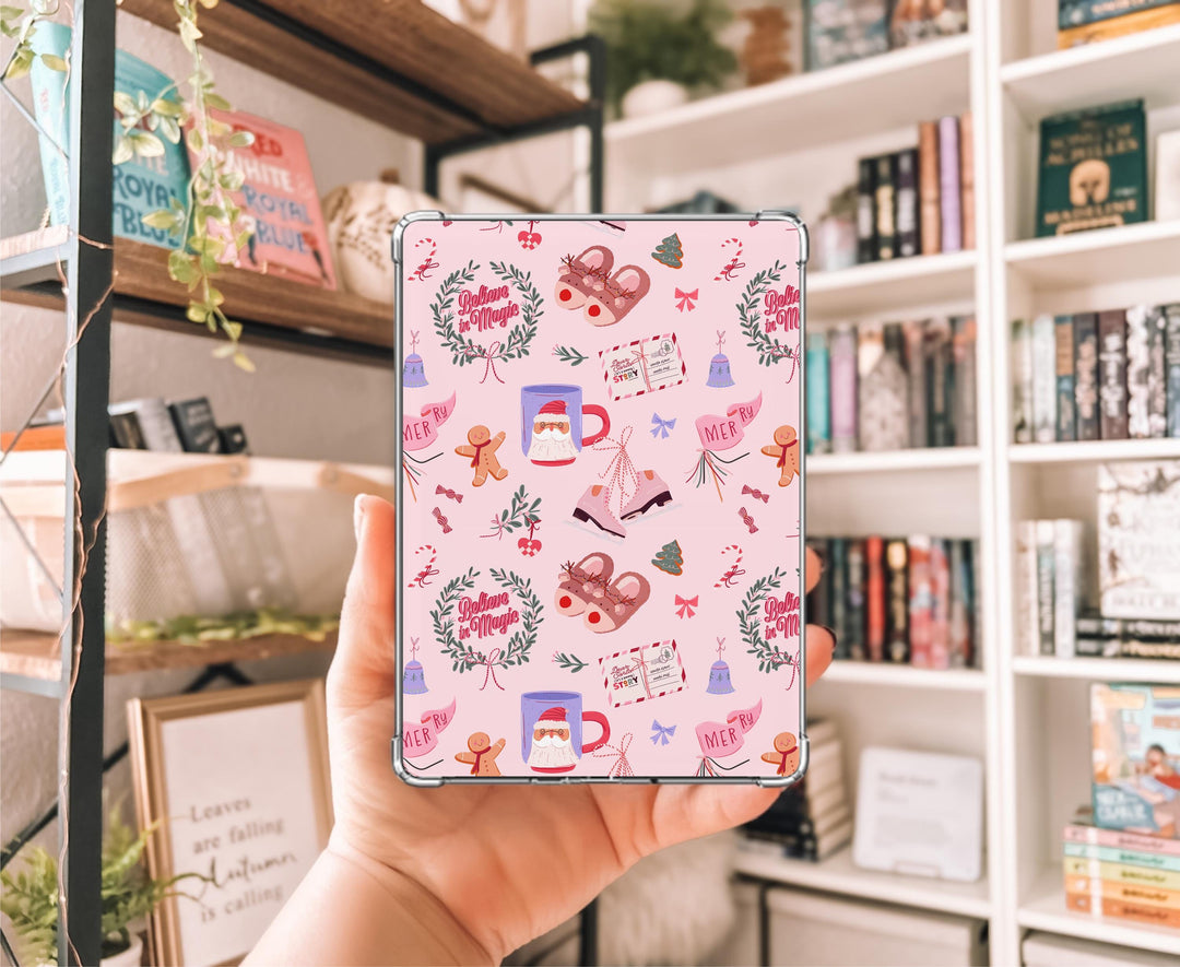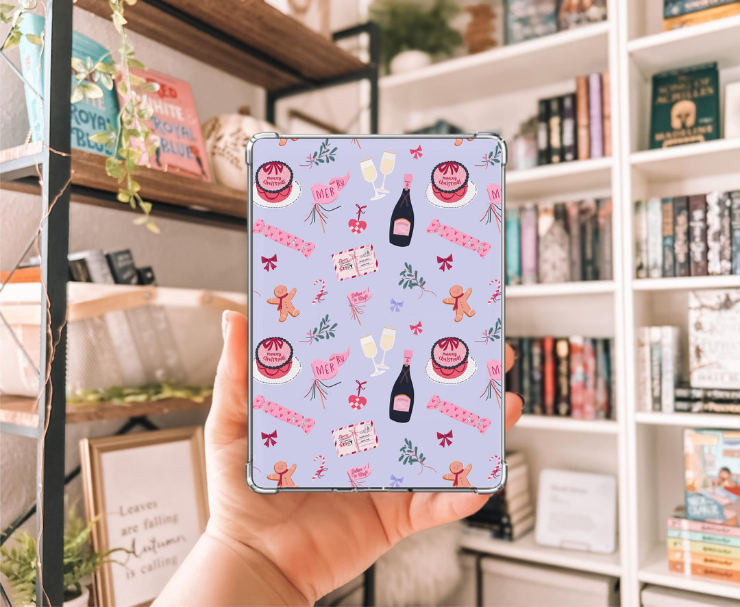 Whimsical Bookish Christmas Kindle Clear Case Insert, Decorative Flowers, Cardstock for 11th & 12th Generation Paperwhite Colorsoft BXMSBX1
