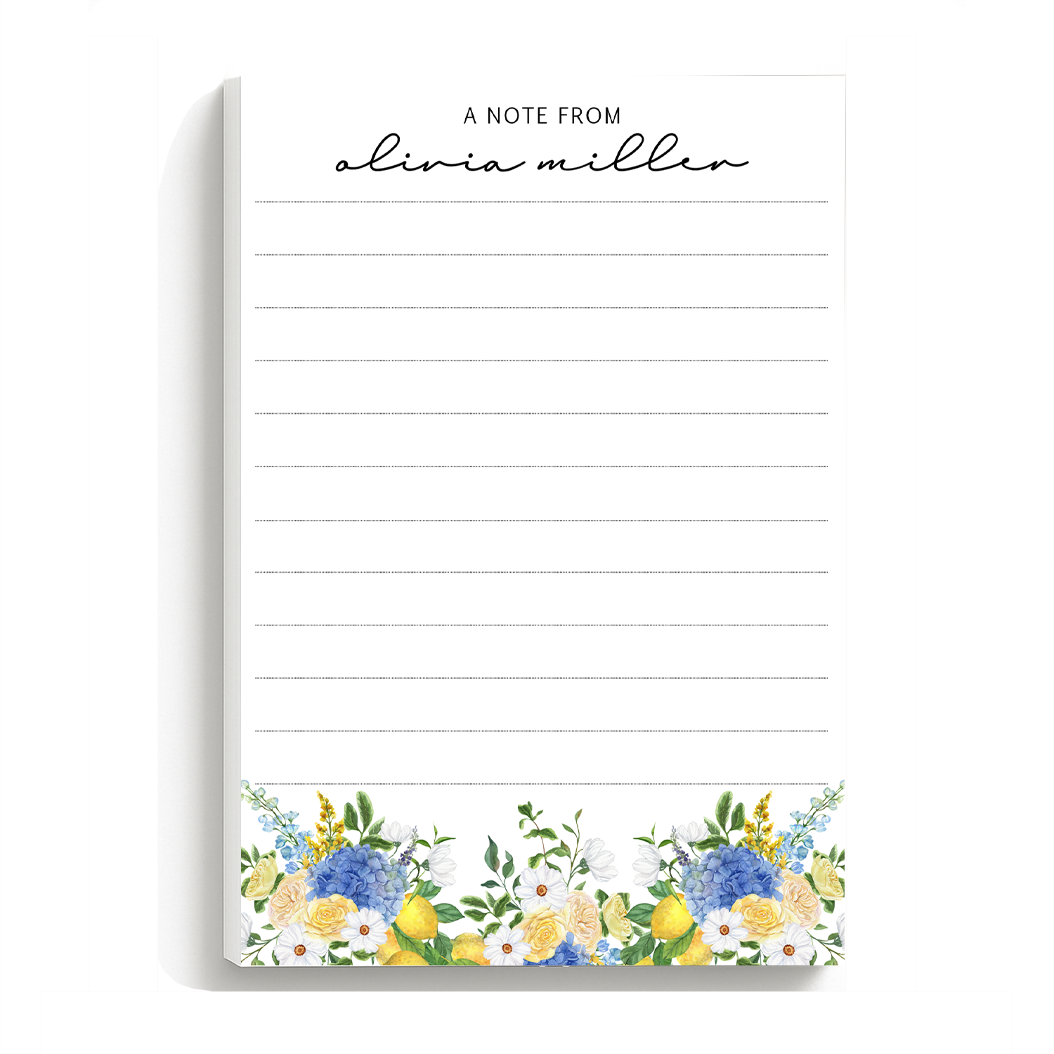 Personalized Notepad Lemon Flowers, Custom Stationery