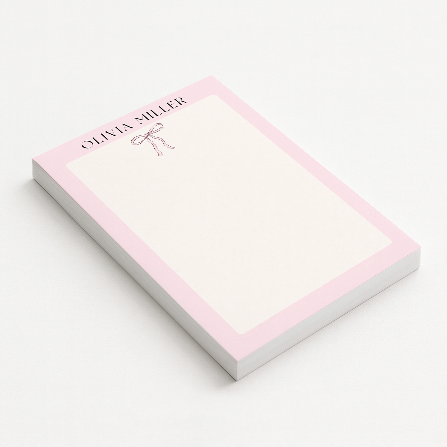 Here is your uniquely personalized notepad, you can choose from different sizes, pages counts and more.