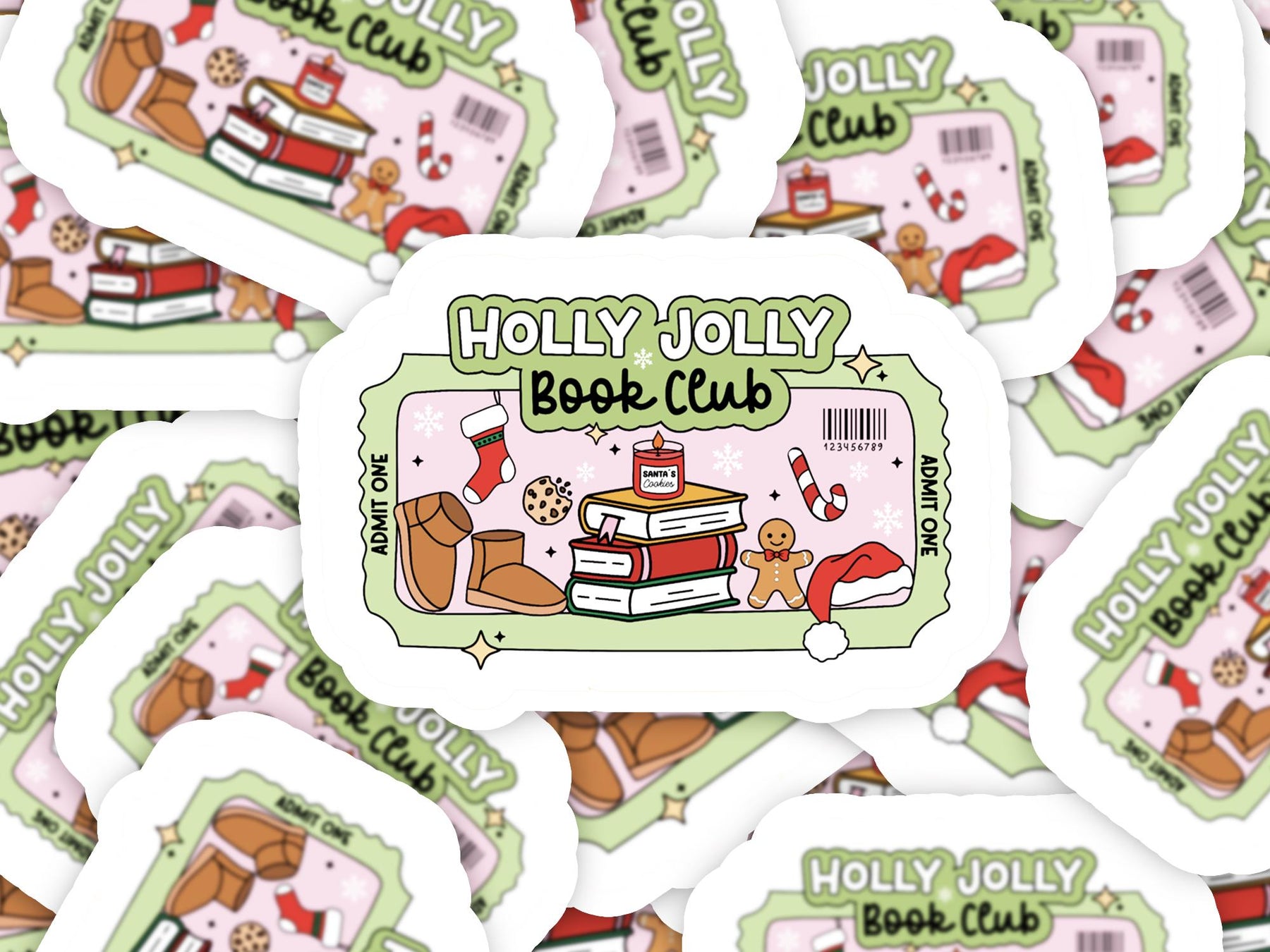 Holly Jolly Book Club Sticker, Bookish Christmas Sticker Gifts