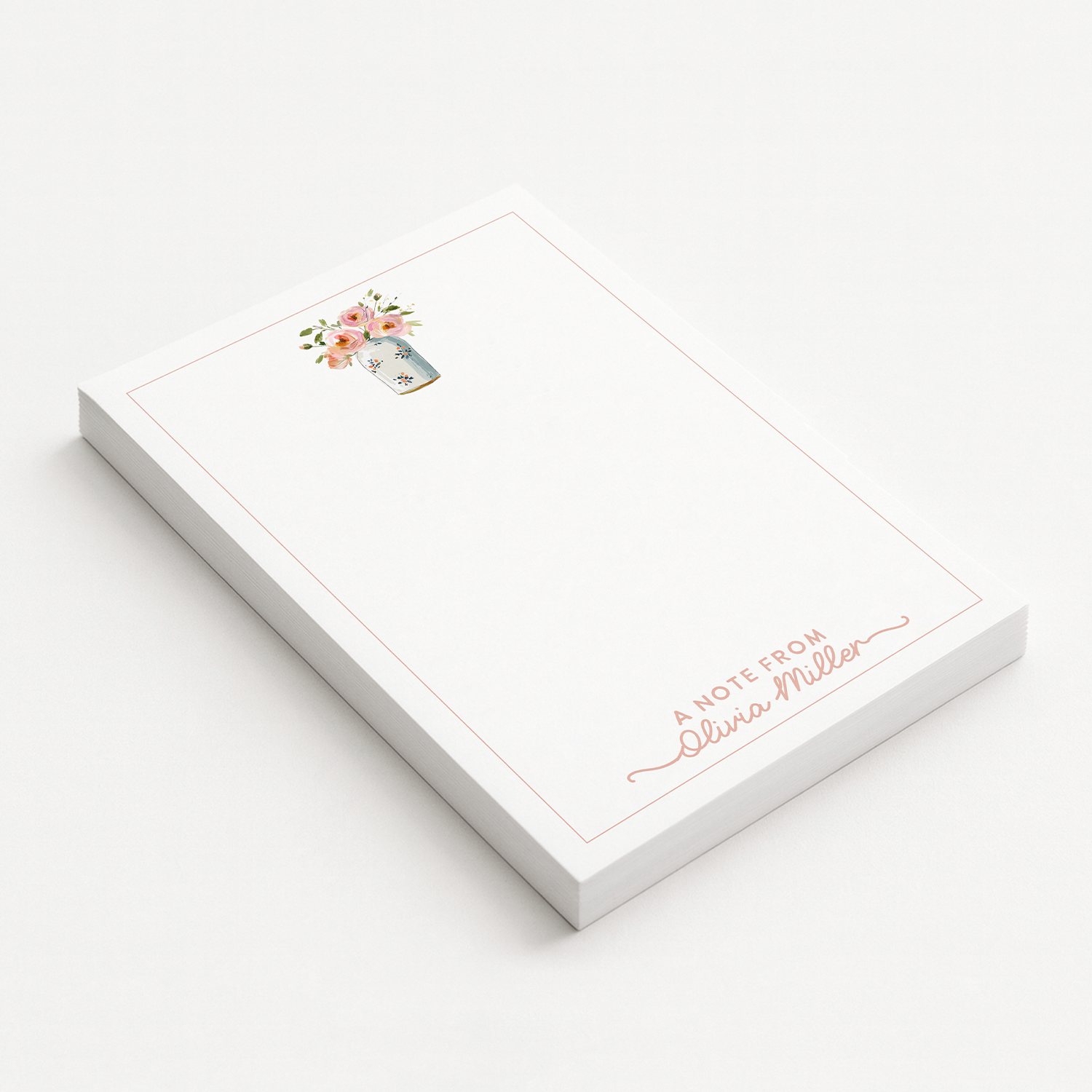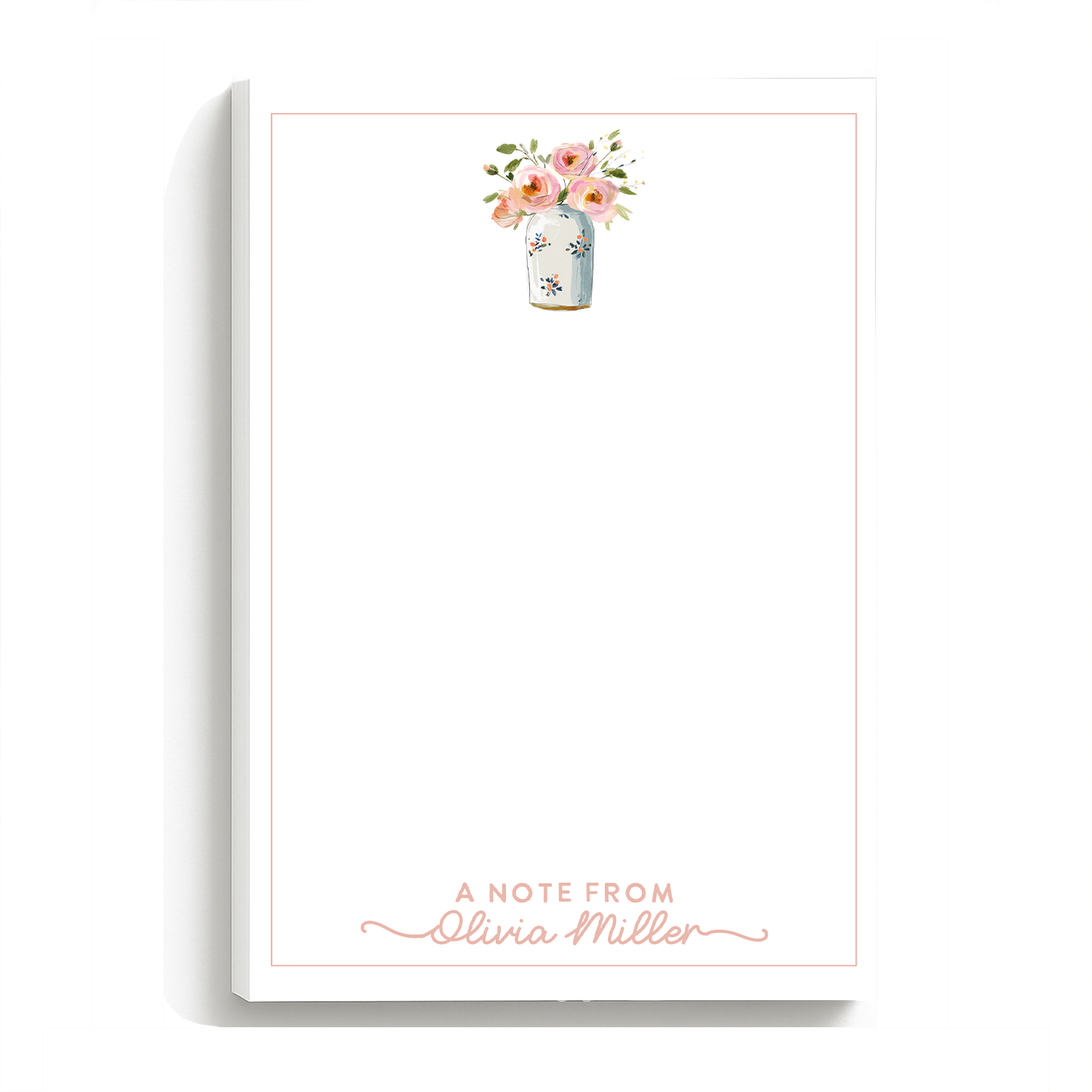Personalized Notepad, Watercolor Pink Stationery