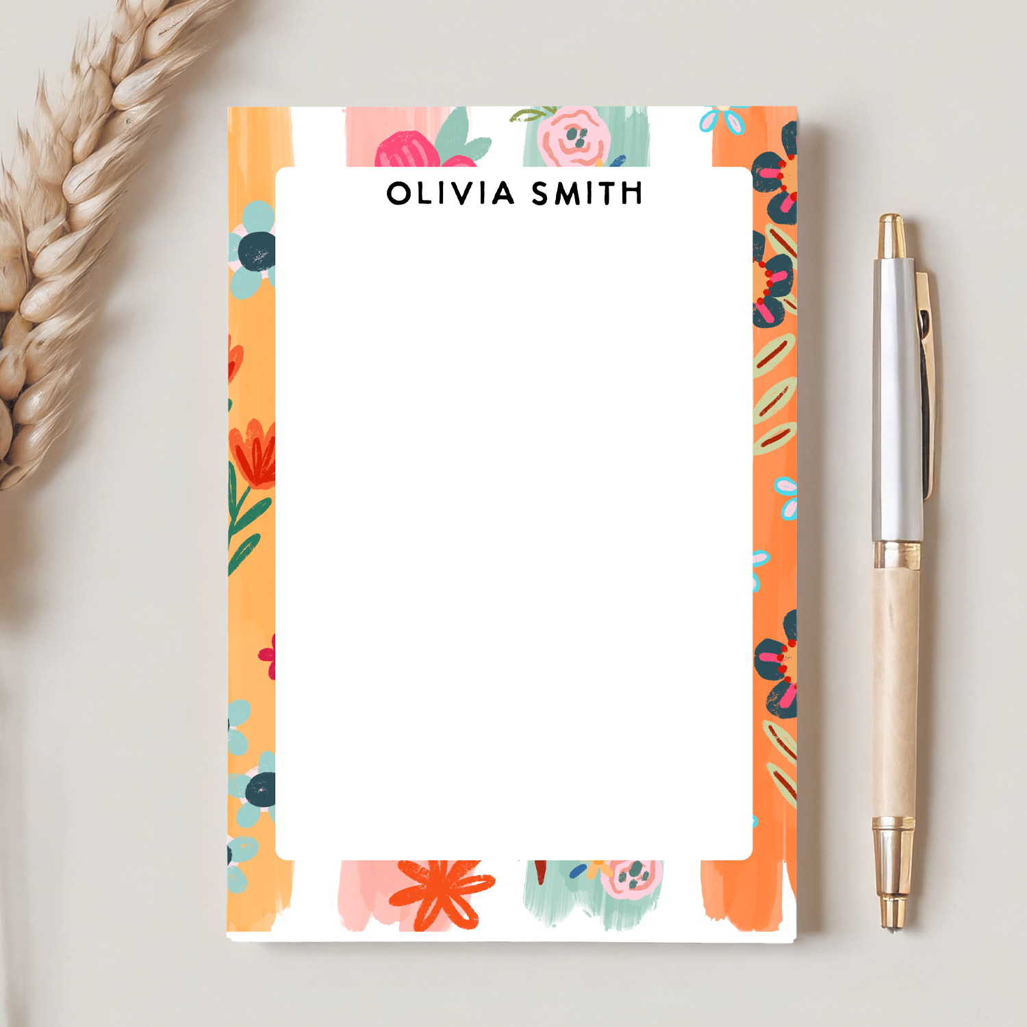 Here is your uniquely personalized notepad, you can choose from different sizes, pages counts and more.